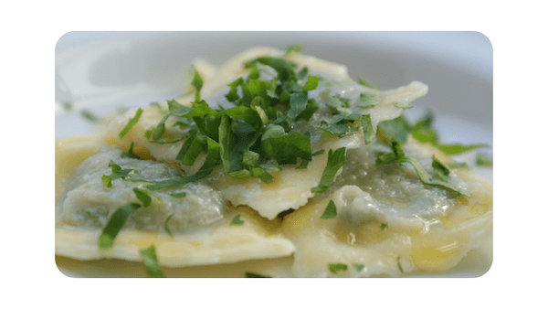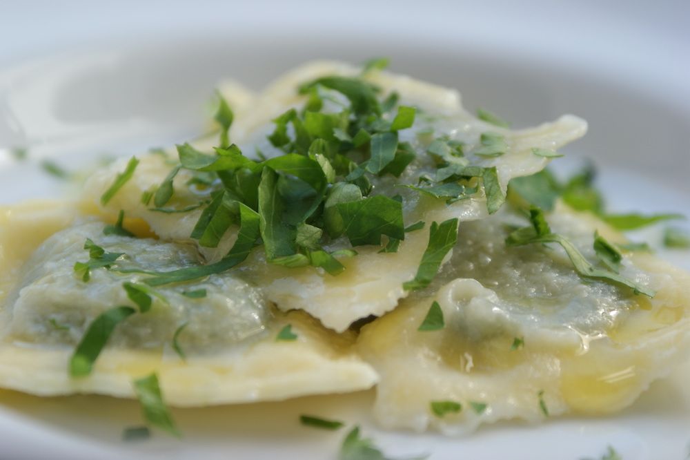 Un plat qui chante et vante les bienfaits du printemps. Subtilité et légèreté sont au rendez-vous. Crème et farce se partagent les mêmes ingrédients (épinards et ricotta) pour aboutir à une onctuosité gourmande réelle. L’enchantement est au sommet de chaque fourchette, répété autant de fois qu’il y a un ravioli encore disponible dans les assiettes.