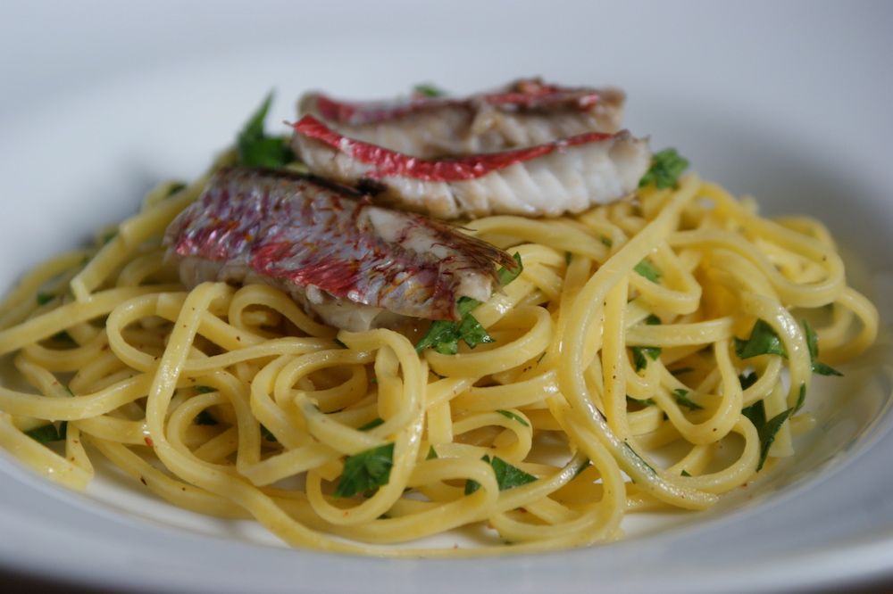 Réunir les linguine et le jus de rougets. Ajouter le persil ciselé. Mélanger délicatement pendant deux minutes afin que les linguine s’imprègnent de sauce.