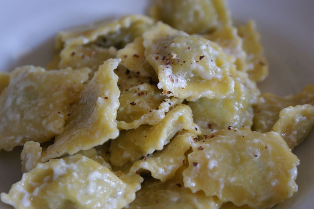 Étendre la pâte jusqu’à l’obtention d’une feuille de 1 cm d’épaisseur. Faire des cercles à l’aide d’un emporte-pièce. Mettre une boule de farce sur chaque cercle que l’on ferme en forme de demi-lune avant de la replier une nouvelle fois pour lui donner la forme de cappelletti.