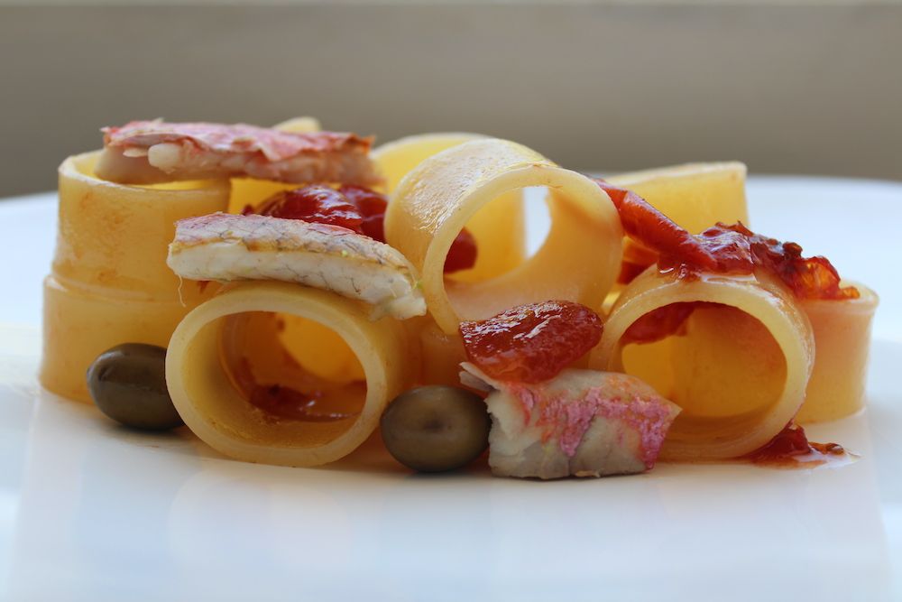 #251 – Calamarata, rougets, tomates, olives & romarin