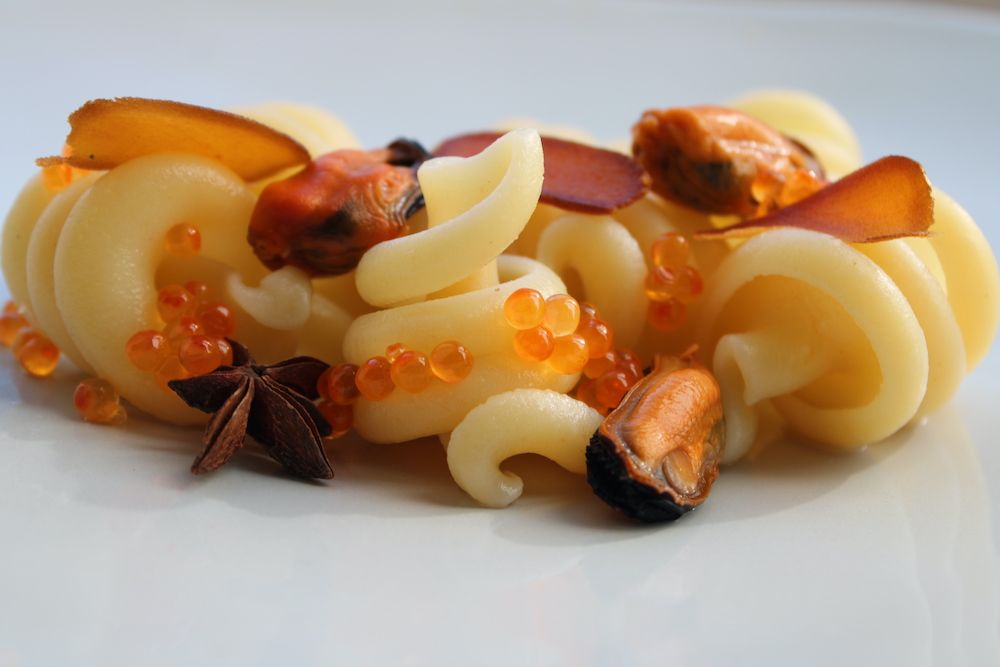 Trottole, poutargue, moules, anis étoilé, oeufs de truite