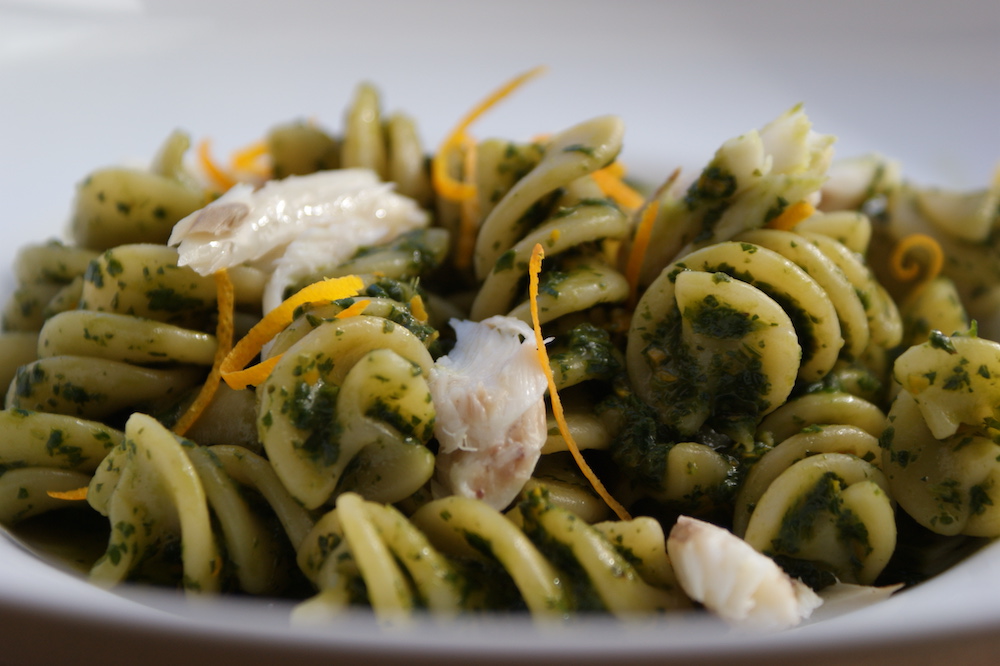Une fois que l’on a goûté à ce pesto, il est rare de ne pas demander s’il y a encore des pâtes mais, non, on ne réchauffe pas les pâtes. On les sert en une fois. 80 gr par personne, c’est l’idéal : elles rassasient et le pesto est bien présent.
