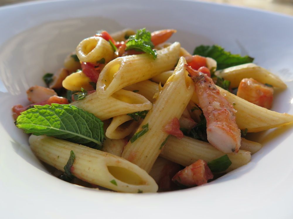 Cuire les croxetti dans un grand volume d’eau salée et bouillante. Les égoutter al dente. Verser les croxetti sur l’ensemble calamars-crevettes-citron-tomates-piment-menthe. Mélanger.