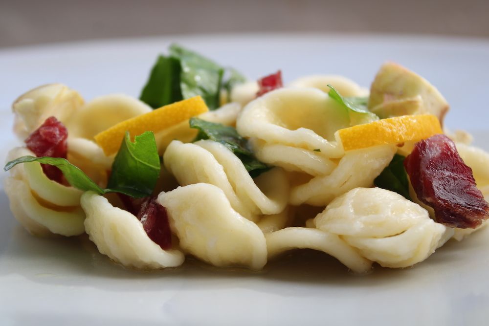 Orecchiette, artichauts, culatello, épinards, citron confit