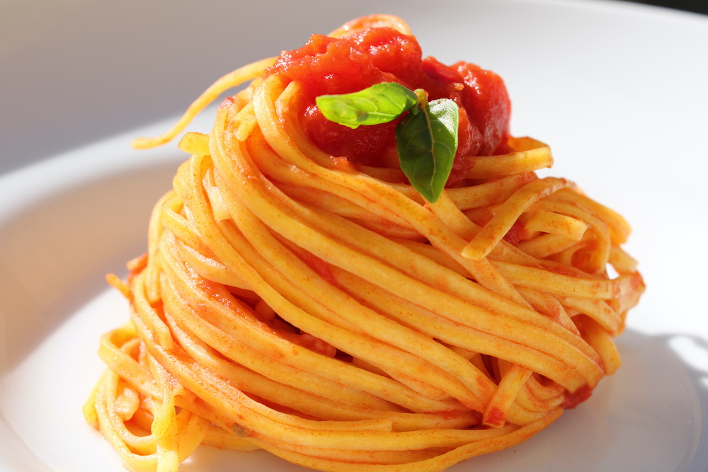 Le classique de la cuisine italienne : des pâtes, des tomates, de l’ail et du basilic. On peut même se dispenser du basilic. Car s’il y a la Pasta, il y a aussi, autre point cardinal d’une cuisine italienne simple et gourmande, les tomates, irremplaçables, indispensables, toujours présentes. On a même parfois l’impression que la tomate est (avant tout) italienne, qu’elle y a vu le jour.