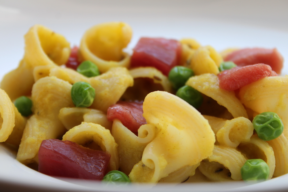 C’est la recette idéale pour un jour de paresse. Pour calmer une petite faim à l’heure d’un déjeuner que l’on veut rapide et gourmand. Une recette pleine de fraîcheur et d’un parfum vif apporté par le curcuma et le citron. Elle s’exécute aisément et exige peu de temps. D’ailleurs, la sauce s’élabore pendant la cuisson des tagliatelle. Parfois, elle est même prête avant et on attend encore deux à trois minutes avant d’égoutter les pâtes. On peut y ajouter quelques filets de filets de maquereaux rôtis au four pour une note marine agréable sortant de l’ordinaire.