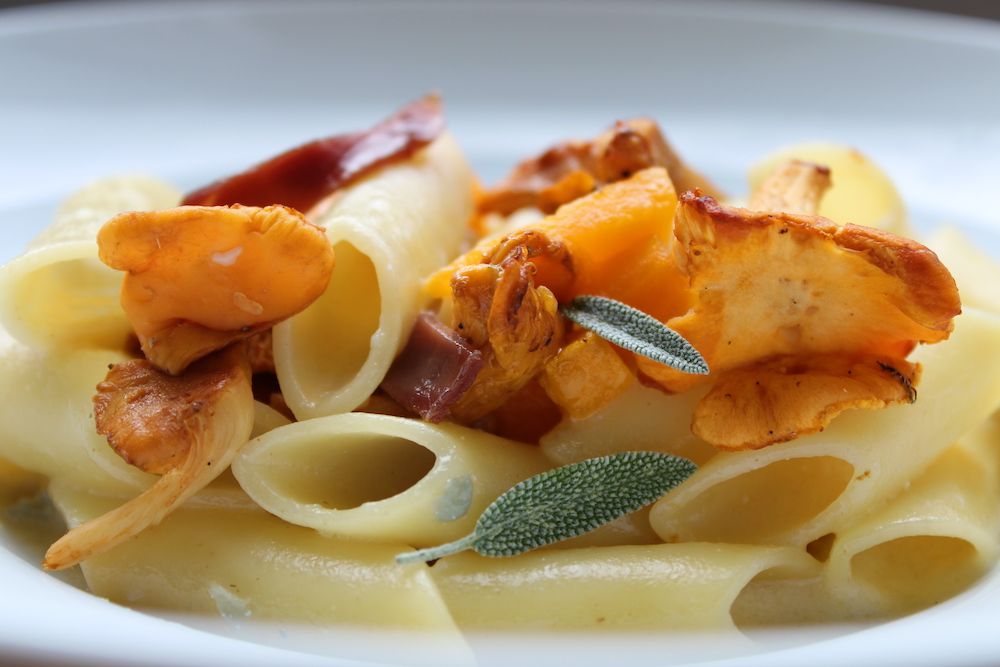 Le foie gras conserve une belle onctuosité et il s’associe à la perfection aux légumes, au côté encore croquant du chou-vert et des chanterelles. Les penne, pâtes au format court, cuites bien al dente, contribuent à l’allure festive, mais décontractée de l’assiette. Un pur plaisir.