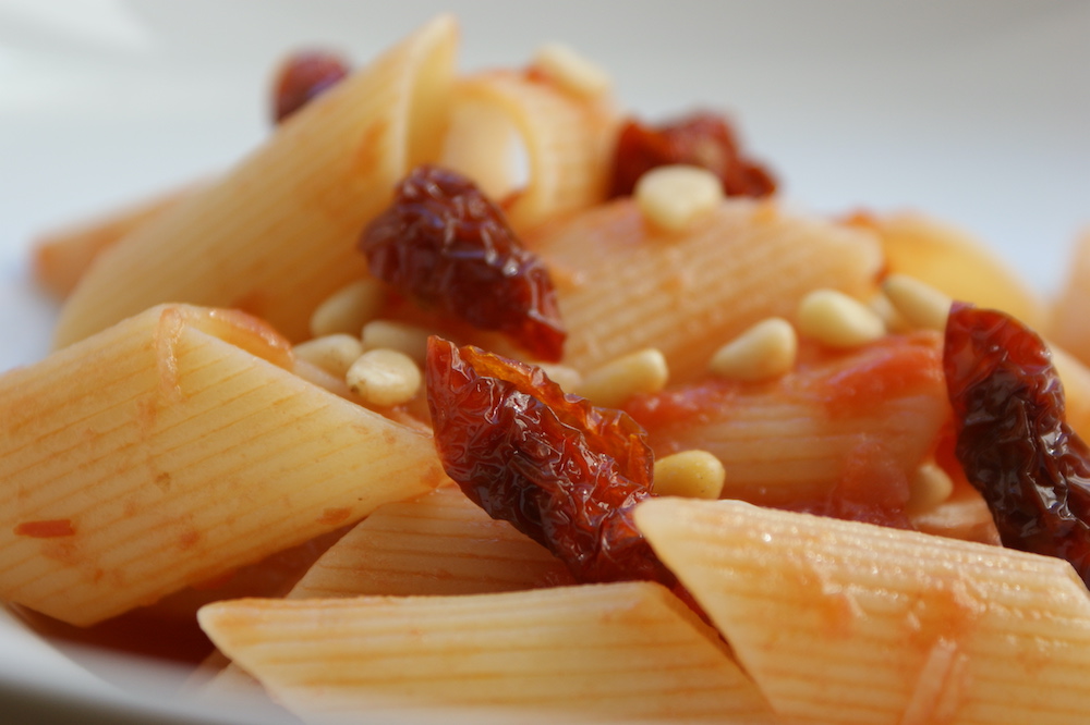 Cuire les pennoni dans un grand volume d’eau salée et bouillante. Les égoutter al dente, les verser sur le coulis de poivrons. Mélanger.