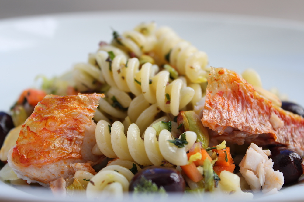 Une recette de plein été qui apporte de la fraîcheur, séduit parce qu’elle est simple et gourmande. On apprécie toujours autant le goût singulier du rouget, on aime associer différentes tomates dont les saveurs s’entremêlent. Ici, la tomate cerise apporte une note subtilement sucrée alors que la purée de tomates est marquée par l’acidité.