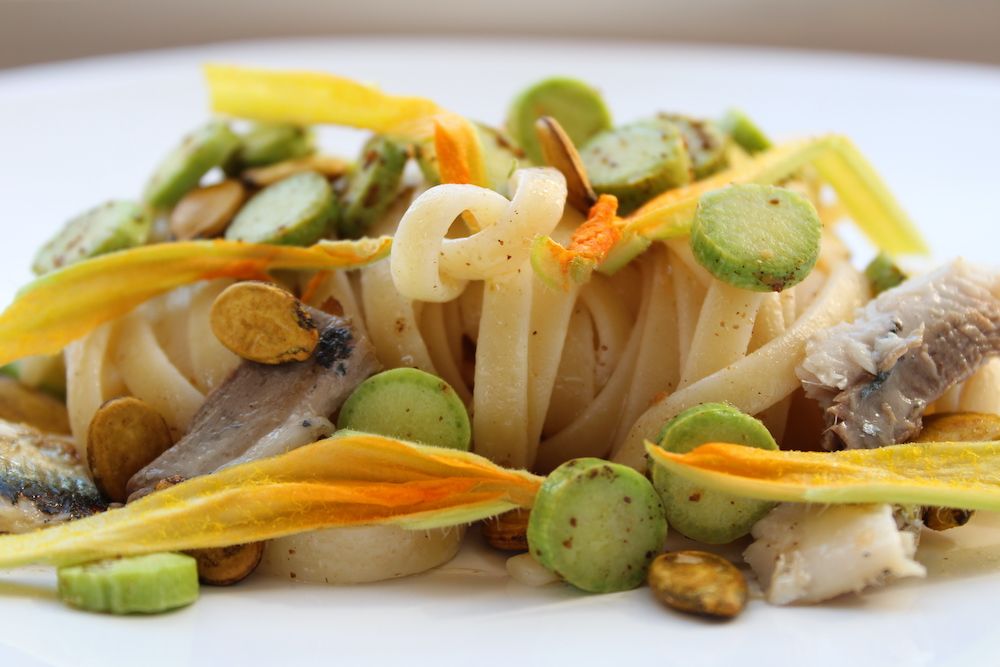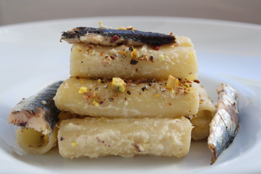 Un voyage gourmand d’une belle simplicité entre Pouilles (les orecchiette) et Sicile (les anchois). Un condensé de saveurs : le goût pointu de l’ail, la sapidité de l’anchois, le gras des olives et des pignons, la tonicité du piment et la délicatesse du brocoli. Un plat qui fait irrésistiblement penser aux beaux jours, au printemps très proche.