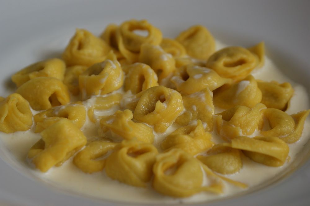 Les tortelloni au parmesan sont une pure gourmandise. On a immédiatement en bouche l’onctuosité du parmesan et la fermeté de la pâte. Cela donne une mâche agréable qui est aussitôt complétée par la saveur des rognons et la fraîcheur apportée par les poivrons et les tomates cerises. L’assiette revendique un vin rouge. On choisit un vin du Piémont, une Barbera d’Alba qui se caractérise par une belle acidité.