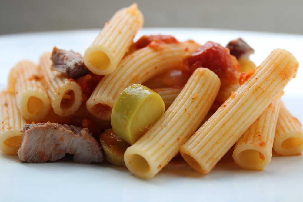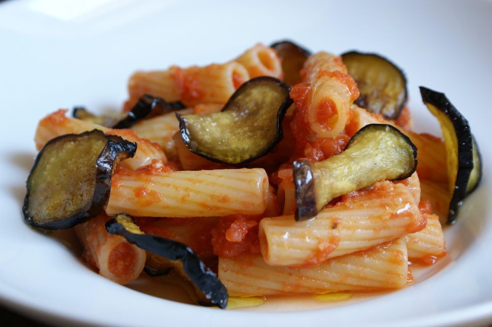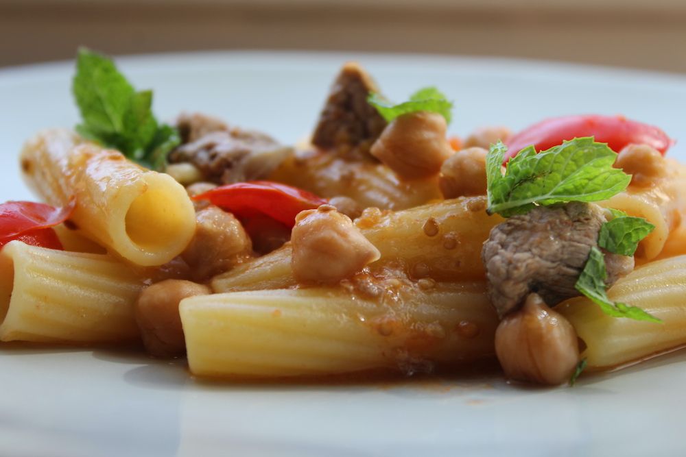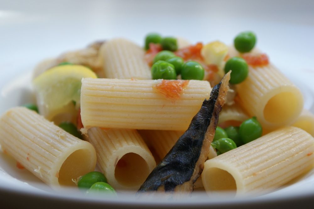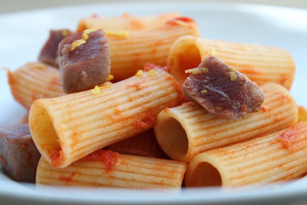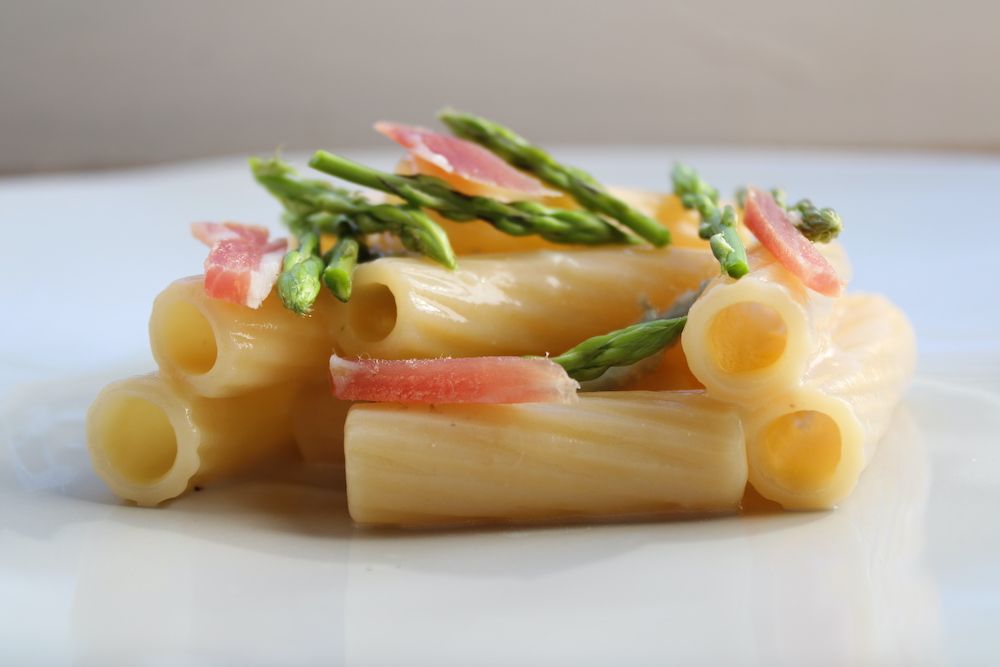 Tortiglioni, cabillaud, lard & sauge, pesto de basilic